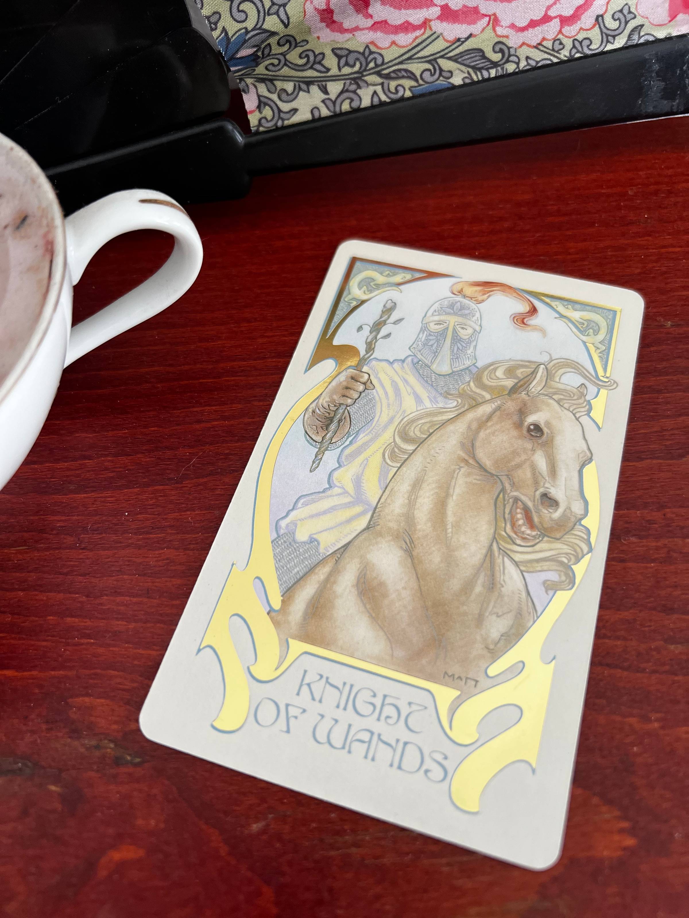 The card of the week is..... The Knight of WandsThe Knight of Wands asks a question I've been ruminating on a lot lately, which is: HOW do we defend what's important to us, defend those who are most vulnerable, and fight to create a better world...without violence. Luckily, the Knight of Wands also has an answer for this. Notice the Knight on the card isn't holding a sword, or even a lance. He's just holding a stick. Small, and even pretty insubstantial. It reminded me of the beginning of the book Children of Blood and Bone by Tomi Adeyemi. In Zélie's village there's a woman who secretly teaches any young girl who wants to learn the art of fighting with the staff (from the outside, or when guards come, it looks like she's hired them as seamstresses). The girls in question are the most vulnerable- daughters of a race that has been persecuted, massacred, and enslaved by those in power, but they're taught to fight with the staff, instead of swords. And when they ask why, their teacher says: "It avoids rather than hurts, it hurts rather than maims, it maims rather than kills - the staff does not destroy." (p.16) Similarly, the Knight of Wands tells us it is time to fight, but to pick a weapon that your conscience is comfortable with. Not that everything is about fantasy books.... but it makes me think about the Fellowship of the Ring - how it was made up pretty evenly of people (and elves, and dwarves) who were comfortable swinging a sword, and little hobbits who on first glance didn't bring much to the party. But they were the heart of the mission. When you ask yourself this week what you can do to help make our world a little safer, to make our world a little brighter, don't ask yourself to pick up a weapon you've never used before, or one that you're not sure you believe in. Focus on what you do well, and use it! The Fire Horse The fire & horse imagery in this card are no accident. Next week, February 17th, is the Lunar New Year and the start of the year of the Fire Horse. I don't pretend to be an expert in Chinese astrology, but I found a bit on what that means for us: "The Year of the Fire Horse combines two highly yang forces: Fire and Horse. This pairing amplifies intensity, speed, and transformation. Historically, Fire Horse years were misunderstood as disruptive. In modern interpretation, they are better understood as periods that demand clarity, self-regulation, and intentional action" This week you're going to start to feel the shift from last year's energy of shedding what doesn't work, to a much more fiery energy of charging forward. With your stick. Sorry! Er, wand. The Main Message:The work is starting, and the best way to do it is to lean in to what you are already good at & brush up on your "fighting skills". Don't stay quite. Don't sit back. Don't put down your stick. Even if it feels like you just brought a stick to a sword fight. Practical Magic: